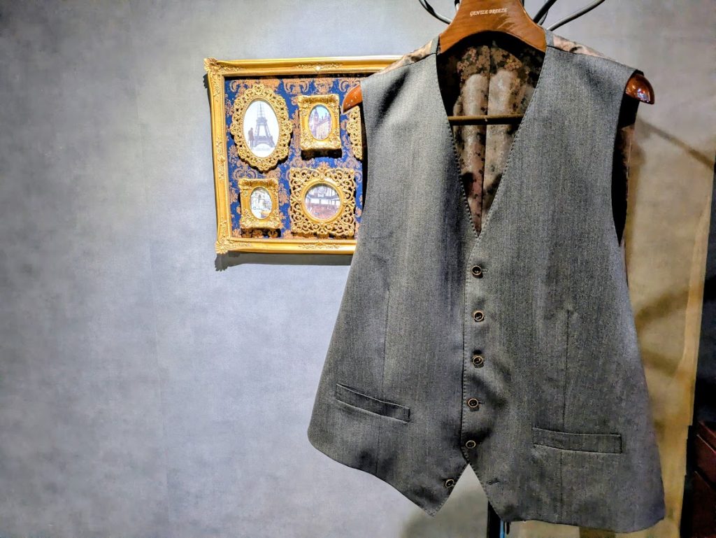 S様には数年前にもスーツを誂えていただき、今回2着目のスーツをリピートオーダーしていただきました。前回と異なる点は独身であったS様が結婚され、奥様から「結婚指輪のお返し」として(ご夫婦で)ジェントルブリーズへお出かけいただいたこと(結婚指輪は隣接するジュエリー工房アステリズムで手作りされました)。